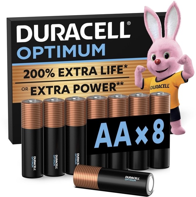 Duracell Optimum gaat in veel apparaten met gemiddeld tot hoog energieverbruik langer mee dan eerdere Duracell alkalinebatterijen.