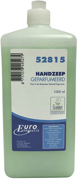 Euro handzeep, compatible Santral/Ingo-man is een fris geparfumeerde zeep voor dagelijks gebruik in sanitaire ruimtes van bijvoorbeeld scholen, kantoren en horeca gelegenheden.