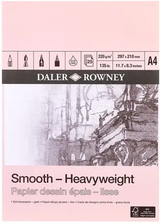 Tekenpapier Daler Rowney Smooth 220gr A4 wit 1 Stuk