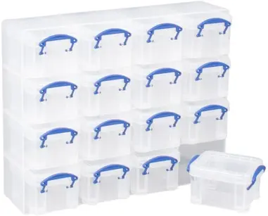 Handige opbergbox met 16 losse boxjes in een houder. Gemaakt van 100% Polypropyleen.
