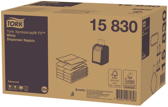 De Xpressnap Fit® Dispenserservet wit N14 geschikt voor de Tork Xpressnap® Fit-"Signature Line" Tabletop- en Counterdispensers.