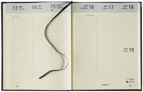 Brepols agenda Optivision Large Lucca Nederlandstalig met 1 week op 2 pagina's en uurindeling (8:00u-23:00u) met een optimale leesbaarheid.