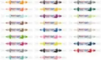 De tube heeft twee spuitmonden, één aan elk uiteinde, met een schrijfbreedte van 2-3 mm en 5-10 mm.