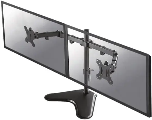 Met de NewStar FPMA-D550DDBLACK monitorarm plaatst u twee monitoren op het bureau met een bureau standaard.