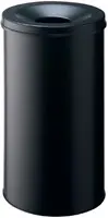 Ronde, metalen afvalbakken met vlamdover.