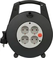 Vario Line kabelhaspel, met randaarde, 4-voudig zwart/lichtgrijs 15m H05VV-F 3G1,5.