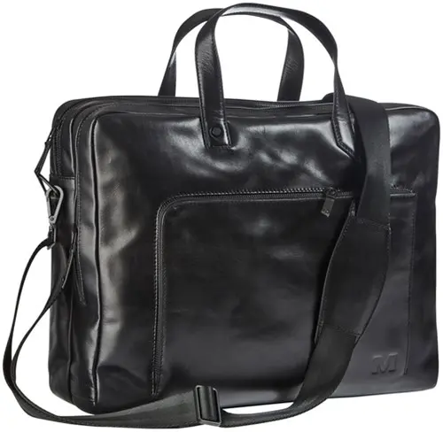 MAVERICK ALL BLACK lederen business tas met laptopvak 15,6".