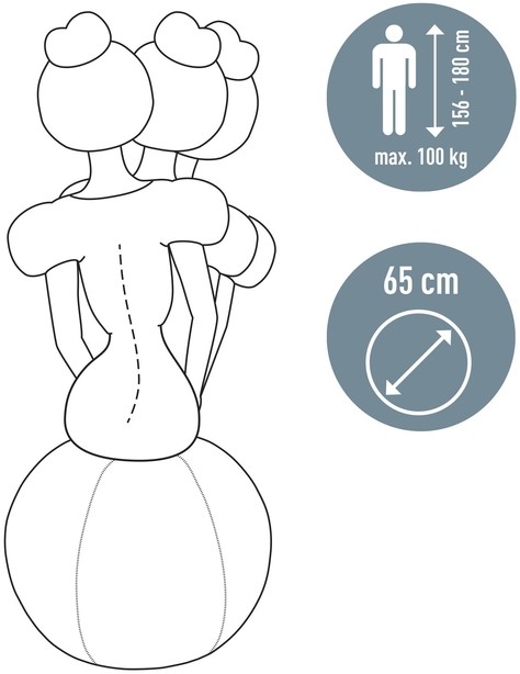 Inclusief: binnenste gymnastiekbal, stoffen balhoes, handluchtpomp en 2 pluggen