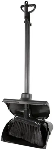 Maak schoonmaken comfortabeler en efficiënter met het hotelstofblik Cleaninq groot sluitend staand in zwart. Deze professionele set is voorzien van een lange steel en een ruime opvangbak met sluitende deksel, waardoor je moeiteloos kunt vegen zonder te bukken. Dankzij de brede veger en soepele wieltjes is het verwijderen van vuil snel en gemakkelijk. De set is aan elkaar te bevestigen, wat opruimen vereenvoudigt en ruimte bespaart – ideaal voor schoonmaakkasten met beperkte ruimte. Met een afmeting van 32x30x90cm is dit hotelstofblik de perfecte combinatie van gebruiksgemak en functionaliteit.Kenmerken: