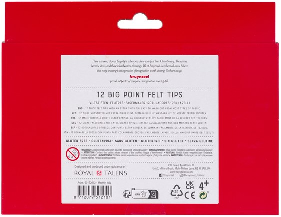 Viltstift Bruynzeel Kids Big Point set 12 kleuren 12 Stuk