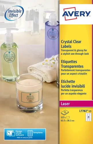 Etiket Avery L7782-25 63.5x38.1mm tr 525stuks 25 Vel