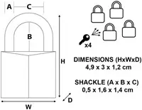 Hangslot MasterLock 4 gelijksluitend messing 30mm 4 Stuk