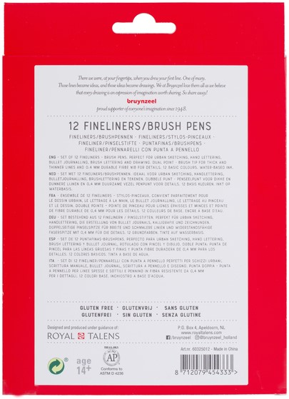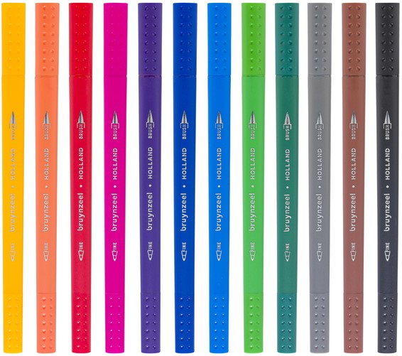 De basisset van Bruynzeel Creatives betreft een set van 12 fineliners/brushpens. Ideaal voor urban sketching, handlettering, bulletjournaling, brushlettering en tekenen.