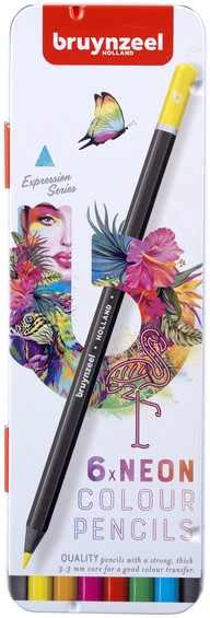 Deze set van 6 hoge kwaliteit kleurpotloden in gave neon tinten tinten zorgen voor een mooi contrast op je tekeningen.