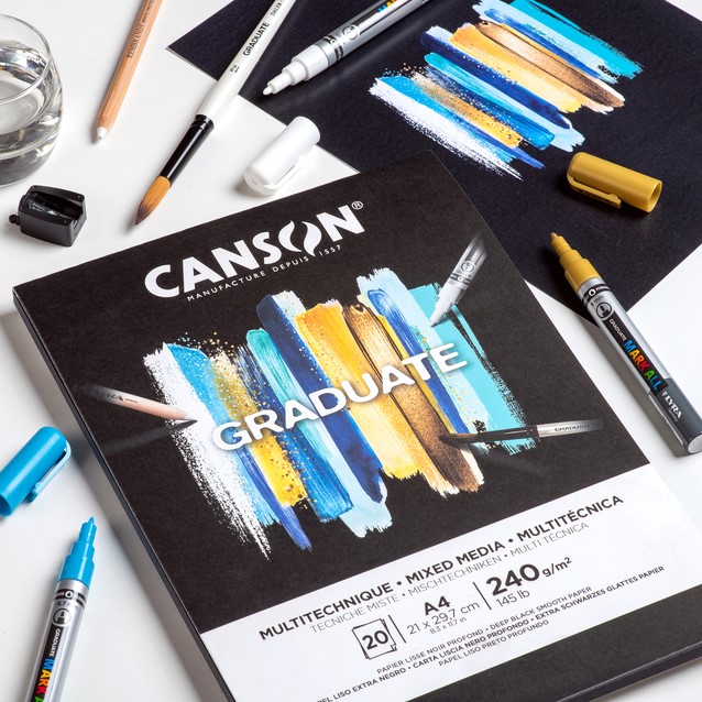 Mixed mediapapier Canson Graduate 240gr A4 zwart 1 Stuk