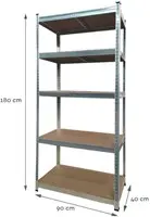 De solide BRASQ stellingkast is de ideale opberger voor in je werkplaats, voorraadkast, magazijn, winkel, archief of garderobe. De hoogte in werken is altijd een slim idee als het gaat om het opbergen van spullen. Zorg ervoor dat je spullen van de vloer of grond zijn en houdt ze daardoor droog en schoon. Met zijn afmeting van 90x40x180cm, en 5 lagen om je spullen, dozen en kratten op te plaatsen, is dit handige stabiele magazijnrek een echte maatwerkoplossing. De stellingkast is gemaakt van gegalvaniseerd staal en met FSC gecertificeerd houten planken, van 4 mm dikte met legbord opstelling, kun je de stellingkast inzetten als voorraadkast, winkelinrichting, werkbank of kantooropslag. Met een laadvermogen van 175 kg per etage, en een totaal draaggewicht van 875 KG, heb je een handig hulpmiddel om al je spullen en voorraad te ordenen. De stellingkast is extra sterk door de voor gemonteerde dwarsbalk op elke laag. De stellingkast is dankzij het klem-klik-klaar systeem zeer eenvoudig te monteren. Gebruik voor alle veiligheid werkhandschoenen om het rek in elkaar te zetten. Om dit nog meer te vergemakkelijken is het enige dat je nodig hebt een rubberen hamer en een platte schroevendraaier. De poten van deze stevige stellingkast hebben stalen palen met een gekrulde rand om scherpe randjes te voorkomen en vergrote daarmee ook de stabiliteit en draagkracht. De onderkant van de pootjes zijn afgedekt met beschermdoppen om krassen op de vloer te voorkomen. Dit artikel is ook geschikt om te verankeren]aan de muur. Nooit meer los slingerende artikelen over de vloer en alles netjes geordend en opgeruimd met de BRASQ Stellingkast.