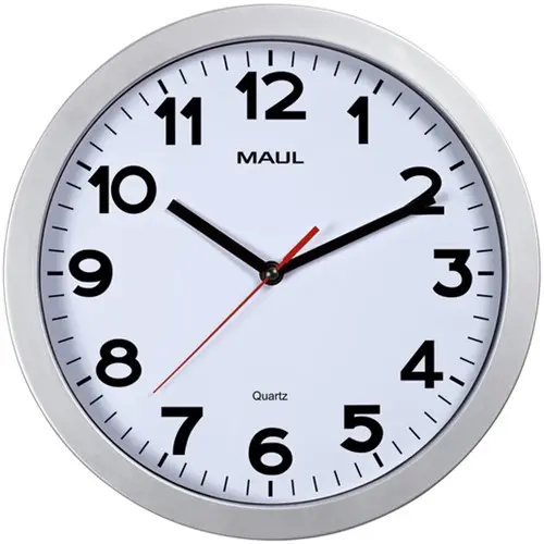 Wandklok MAUL Run RC Ø25x5cm kunststof zilver/wit 1 Stuk