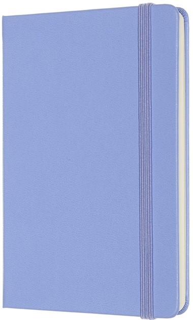 Kenmerken: afgeronde hoeken, elastische sluiting, ivoorkleurig Moleskine-papier, bijpassend leeslint, papier: 70 gsm, zuurvrij, “In geval van verlies”-label op het schutblad, uitbreidbaar binnenvak op achterkaft.