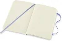 Kenmerken: afgeronde hoeken, elastische sluiting, ivoorkleurig Moleskine-papier, bijpassend leeslint, papier: 70 gsm, zuurvrij, “In geval van verlies”-label op het schutblad, uitbreidbaar binnenvak op achterkaft.