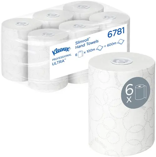 Kleenex Ultra Slimroll papieren handdoeken op rol 6781 2-laagse handdoeken op rol 6 witte papieren handdoekrollen van 100 m