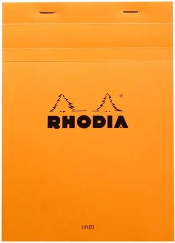 Rhodia notitieblok N°16, 14,8x21 cm, 80 vel gelijnd papier met marge. Ultra-functioneel, het Rhodia notitieblok is "De" referentie voor geniete notitieblokken! 80 afscheurbare vellen met microperforatie. Stevige kartonnen basis zodat je zelfs zonder steun notities kunt maken. Clairefontaine 80 g fijn vellum papier, PEFC gecertificeerd.
