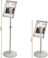 A4 poster displaystandaard voor het overzichtelijk weergeven van posters, borden en belangrijke informatie. De handige aluminium clicklijst zorgt voor eenvoudige wisseling van de inhoud en heeft een professionele afwerking. Deze vrijstaande displaystandaard is een ideale draagbare oplossing.