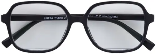 Kant-en-klare leesbril. Moderne vorm met veerscharnieren en een soft-touch oppervlak. Verkrijgbaar in 5 verschillende sterktes. Het montuur van model Greta is geproduceerd uit gerecycled materiaal gerecycled PTC-G materiaal dat volledig vrij is van BPA, BPS en andere bisfenolen. Inclusief etui van gerecycled materiaal.