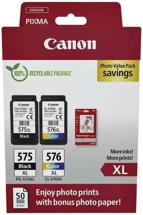 Inktcartridge Canon PG-575XL CL-576XL zw+kl+papier 1 Stuk