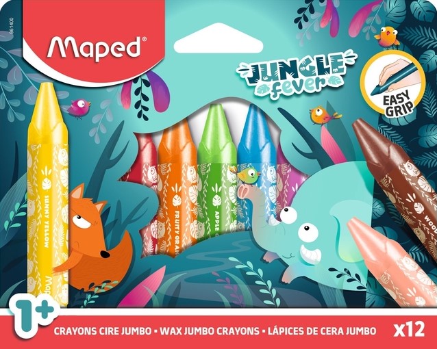 Waskrijt Maped Jungle Fever Jumbo set a 12 kleuren 12 Stuk