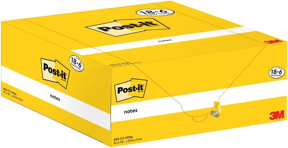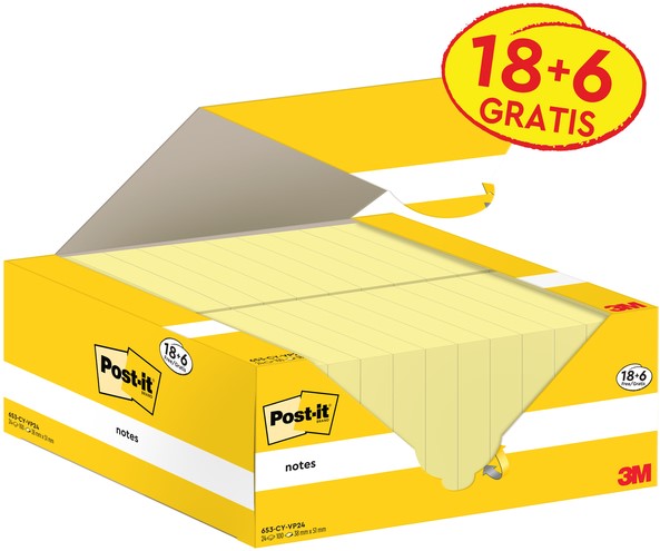Memoblok 3M Post-it 653-CY 38x51mm geel 24 Stuk
