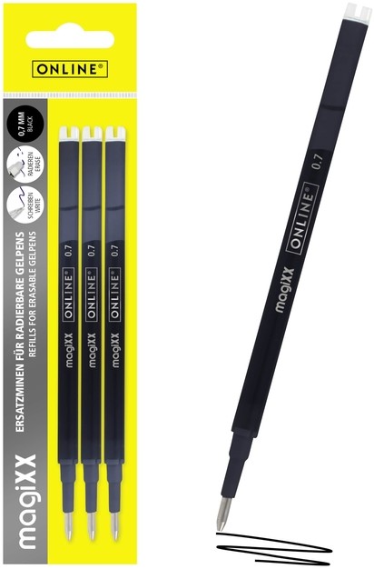 Geef je pen nieuw leven met de MagiXX uitwisbere gelpenvullingen en geniet van een prettige schrijfervaring. Schrijfbreedte 0.7mm. Schrijfkleur zwart. Set à 3 vullingen.
