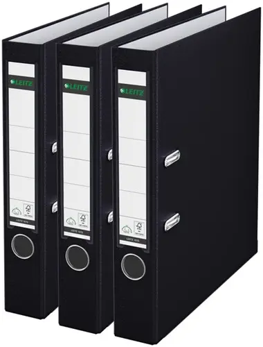 Een multipack van 3 hoge kwaliteit Leitz ordners voor professionele kantoorgebruikers. Duurzame materialen en superieur 180°-mechanisme zorgen voor uitstekende prestaties en efficiëntie. Zeer stevige omslag gemaakt van 30% pre-consumer gerecycled PP-folie en PE-gelamineerd papier aan de binnenkant op stevig 90% post-consumer gerecycled karton voor langere duurzaamheid.