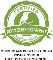 Gecertificeerd gerecycled materiaal dat voldoet aan de SCS Recycled Content Standard V8-0 voor minimaal 64% post-consumer gerecycled materiaal van de totale plastic componenten. Met uitzondering van de printplaat en kabels.