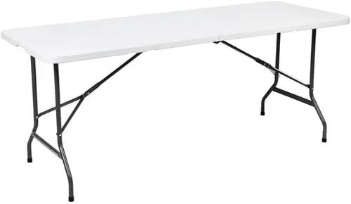 Onze vouwtafels zijn ontworpen met jouw gemak in gedachten. Ze kunnen eenvoudig worden opgevouwen en opgeborgen, waardoor ze weinig ruimte innemen wanneer ze niet in gebruik zijn. In opgevouwen staat is hij praktisch en compact om te verplaatsen en met zijn handige handvat pak je hem eenvoudig om mee te nemen.