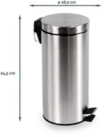 De BRASQ Pedaalemmer is een onmisbaar item en past in elke kamer. Klein, praktisch, lichtgewicht en met een modern en strak design. Met zijn handige formaat is deze RVS prullenbak een toevoeging in badkamer of toilet. De pedaalemmer heeft een uitneembare kunststof binnen emmer met handvat van 30 liter. De emmer is eenvoudig te legen en te reinigen. De prullenbak heeft een voetpedaal met antislip profiel waardoor hij eenvoudig te bedienen is. Doordat je de deksel opent met het voetpedaal minimaliseer je het contact met bacteriën en geuren die zich bij de afvalbak kunnen ophopen. Met deze voetfunctie hoef je je geen zorgen te maken over het aanraken van vuilnis of het verspreiden van bacteriën, waardoor de omgeving van de pedaalemmer hygiënische blijft. De prullenbak, met een doorsnede van 29 cm, is ook handig te gebruiken op de (thuis)werkplek. Deze pedaalemmer staat altijd netjes! De onderzijde van de pedaalemmer is uitgerust met een kunststof beschermrand waardoor hij stabiel blijft staan en dit voorkomt ook krassen op de vloer. De BRASQ Pedaalemmer is een geurdichte en perfect sluitende afvalemmer, handig in gebruik en onmisbaar in elk huishouden of sanitaire omgeving.