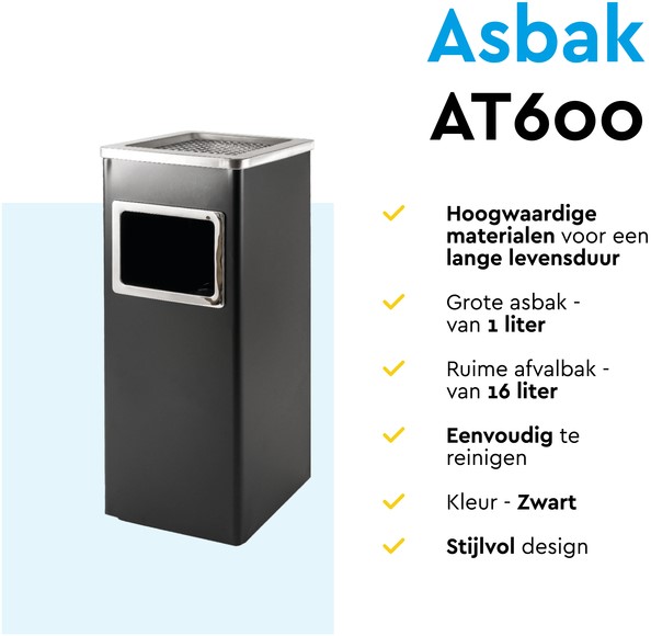 Ontdek de BRASQ Asbak met Afvalbak AT600 - Zwart 16 Liter, dé stijlvolle en praktische oplossing voor schone en georganiseerde buitenruimtes. Met een duurzame constructie, slim ontwerp en een geïntegreerde grote asbak is deze staande asbak de perfecte keuze voor zowel particulier als zakelijk gebruik.