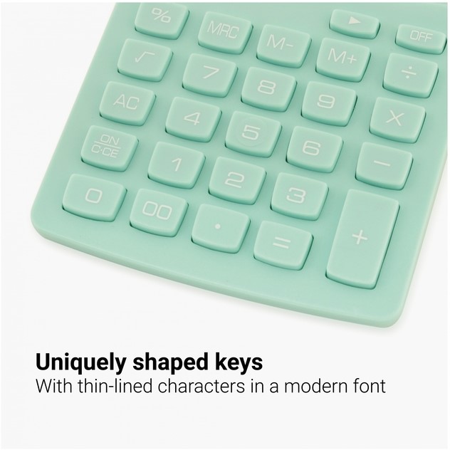 Een nieuwe generatie bureaurekenmachine in stijlvolle kleur met uniek gevormde, gebruiksvriendelijke toetsen. Geschikt voor thuis en op kantoor.