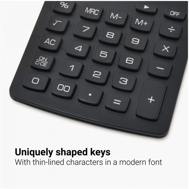 Een nieuwe generatie bureaurekenmachine in stijlvolle kleur met uniek gevormde, gebruiksvriendelijke toetsen. Geschikt voor thuis en op kantoor.