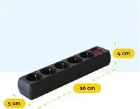 De stekkerdoos met 5 sockets, die geschikt is voor binnenshuis gebruik, is voorzien van geaarde stopcontacten en een hoofdstekker met PEN-aarde. Hij heeft een compacte afmeting van 26x5x4 cm en biedt dus een oplossing voor de meest krappe ruimtes. De stekkerdoos is direct klaar om te gebruiken en geschikt voor geaarde en niet-geaarde apparaten.
