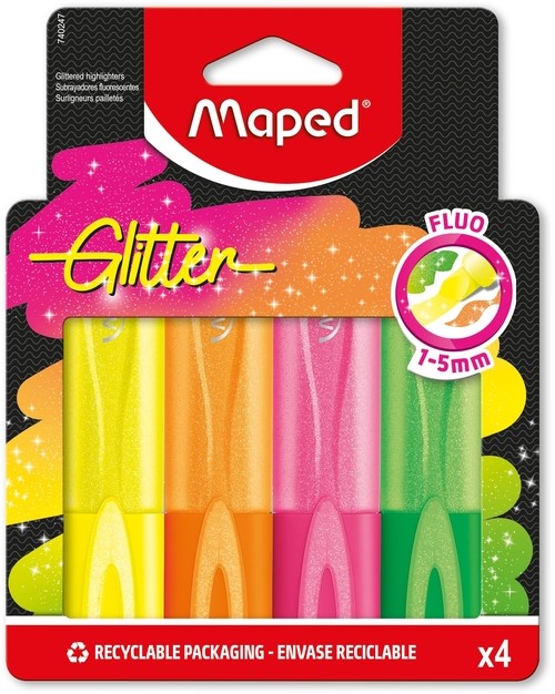 Markeerstift Maped Glitter 4 fluoriserende kleuren 4 Stuk