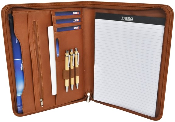 Schrijfmap DESQ A4 met rits bruin 1 Stuk