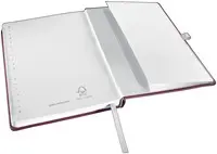 Klassiek notitieboek van hoge kwaliteit met harde kaft in moderne, zacht geborstelde afwerking en elegante kleur. Pennenhouder, elastieksluiting en een vak aan de binnenkant van de achterkaft maken de notitieboekjes nog functioneler.Aantrekkelijke zilverkleurige elastische band houdt de pagina's stevig vastPennenhouder houdt een pen of potlood altijd bij de handTextiele bladwijzer helpt bij het snel vinden en openen van een belangrijke paginaLaatste 8 pagina's zijn geperforeerd in kleinere kaarten voor het eenvoudig delen van contactgegevens of korte notitiesGeïntegreerd vak aan de binnenkant van de achteromslag voor het snel opbergen van losse papieren of visitekaartjes160 pagina's / 80 vellen hoogwaardig, FSC®-gecertificeerd ivoorkleurig papier van 100 g/mVolledig product is FSC Mix gecertificeerd