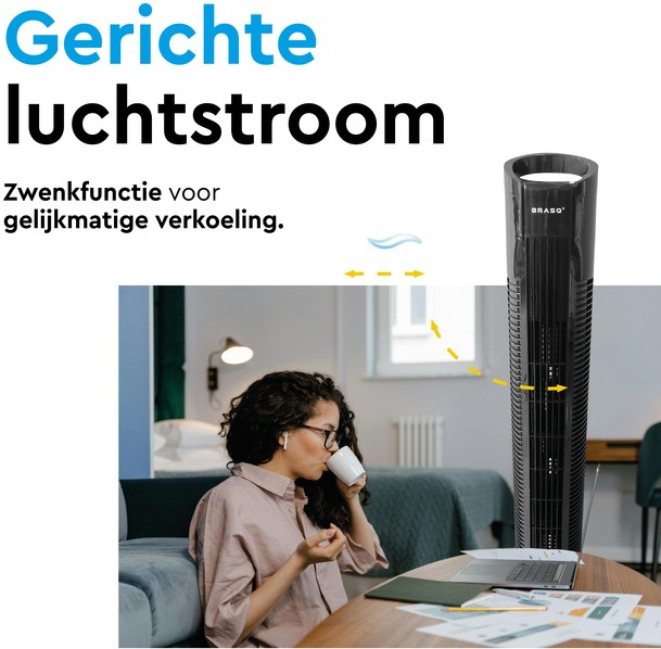 BRASQ Torenventilator met Afstandsbediening – Stijlvolle verkoeling met één druk op de knop
