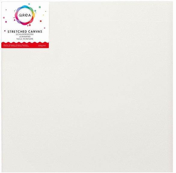 Schilderdoek Qrea Studio 50x50cm. Laat je creativiteit de vrije loop met het schilderdoek van Qrea Studio. Dit hoogwaardige doek is in Europa geproduceerd en biedt een solide basis voor uw schilderprojecten. Het witte doek is gemaakt van 250 gram materiaal (75% katoen, 25% polyester) en is dubbel geprepareerd met gesso voor een uitstekende hechting van verf. Het doek is strak gespannen op een stevig houten spieraam van 2,3cm dik en aan de achterkant geniet, waardoor ook de overdekte zijkanten beschilderbaar zijn. Geschikt voor gebruik met onder andere acryl- en olieverf en verkrijgbaar in diverse formaten voor elk type kunstwerk. Kenmerken: