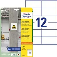 Extra sterkklevende papieren labels 105x48mm.Witte papieren etiketten met extreem sterke hechtingUitermate geschikt voor indoor toepassingen op vochtige, warme, koude, ruwe of stoffige oppervlaktesMilieuvriendelijk; FSC® gecertificeerd papierIdeaal voor mededelingen op het schap in werkplaatsenGegarandeerd storingsvrij, geschikt voor alle gangbare inkjet- en laserprinters en te creëren met gratis online templates en software