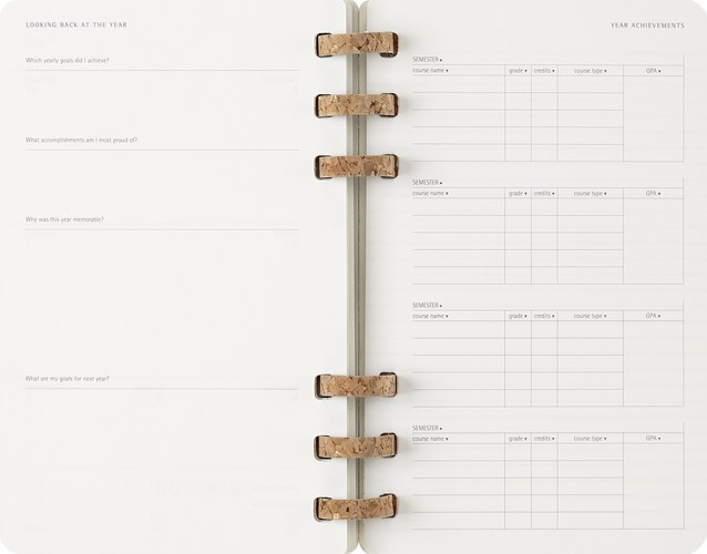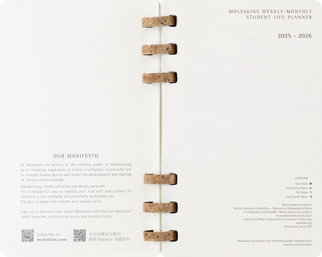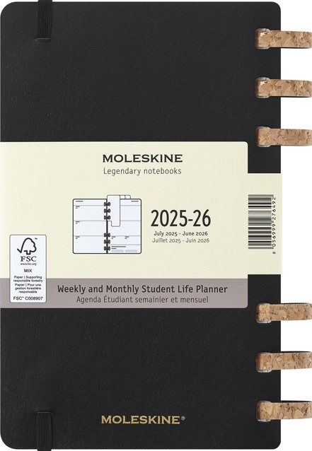 De Student Life Planner van Moleskine is ontworpen om de academische prestaties te verbeteren, georganiseerd te blijven en een gezonde balans tussen studie en privéleven te behouden. De planner bevat een maandelijkse en wekelijkse layout van twee pagina's om alles in te plannen, van dagelijkse afspraken en deadlines tot grote evenementen en langetermijnprojecten. Het boek biedt ruimte om roosters bij te houden, semesterdoelen en actieplannen in kaart te brengen en maandelijkse en jaarlijkse doelen te herzien. De Student Life Planner helpt ook bij het in evenwicht brengen van behoeften die verder gaan dan het academische leven met maandelijkse gewoontetrackers om te personaliseren, in te kleuren en aan te vullen, evenals een wekelijkse herinnering om je te concentreren op creativiteit en humeur. De planner is gedateerd van juli 2025 tot juni 2026 en de pagina's zijn gemaakt met papier van 100 g/m². Elke planner wordt geleverd met stickervellen en 3 bladwijzers om je planning te personaliseren.