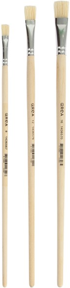 Kwastenset Qrea varkenshaar – set van 3 stuks.Ontdek de veelzijdigheid van de Qrea kwastenset, perfect voor een scala aan toepassingen in kunst en kluswerk. Elke kwast in deze set heeft een platte vorm en is uitgerust met een stevige bus van hoogwaardig plaatmetaal, wat zorgt voor maximale precisie en duurzaamheid. Het ruwe handvat van blank hout biedt een stevige grip, zelfs tijdens langdurig gebruik. Of je nu werkt met verf, primers, lak, lijm of impasto-technieken – deze set staat altijd voor je klaar en is essentieel in elke creatieve of professionele toolkit.Kenmerken: