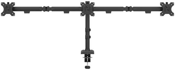 De Neomounts DS60-600BL3 NERO monitorarm is de perfecte keuze voor wie op zoek is naar een stevige en veelzijdige oplossing voor drie monitoren t/m 27" met een draagvermogen van 6 kg per scherm. Deze full motion monitorarm biedt maximale flexibiliteit dankzij de veelzijdige kantel- (90°), roteer- (360°) en zwenktechnologie (180°), waardoor je altijd de optimale kijkhoek vindt voor een ergonomische werkhouding. De NERO monitorarm is voorzien van handmatige hoogte- en diepteverstelling, zodat je jouw werkplek helemaal naar wens kunt aanpassen. Daarnaast zorgt het slimme 180°-stopmechanisme ervoor dat de arm de muur of een scheidingspaneel niet raakt wanneer deze in de buurt wordt geïnstalleerd. De gelaste basis garandeert optimale stabiliteit en stevigheid. Het praktische kabelmanagementsysteem zorgt voor een nette geleiding van kabels. Daarnaast biedt de voet van de DS60-600BL3 een handige plek biedt voor het plaatsen van een telefoon, voor een opgeruimd bureau. De DS60-600BL3 is geschikt voor schermen met een VESA gatenpatroon van 75x75 of 100x100 mm. Neomounts biedt diverse optionele VESA-adapterplaten voor afwijkende gatenpatronen. Voor een naadloze aansluiting van de schermen kan de microverstellingsfunctie worden gebruikt. De installatie van de NERO bureausteun is snel en eenvoudig. Dankzij het Easy-release systeem kan het scherm gemakkelijk bevestigd of losgekoppeld worden. Daarnaast zijn voor bevestiging van de klem aan het bureau slechts een paar handelingen nodig en kan deze, naast handmatige installatie, ook met een inbussleutel of boormachine worden gemonteerd voor nog snellere installatie. De snel-span hendel van de NERO monitorarm maakt het bovendien mogelijk om de hoogte van de arm eenvoudig aan te passen, zonder extra gereedschap. Met het oog op duurzaamheid is de verpakking van de NERO monitorarmen 100% plasticvrij en volledig gemaakt van recyclebaar karton en papier.