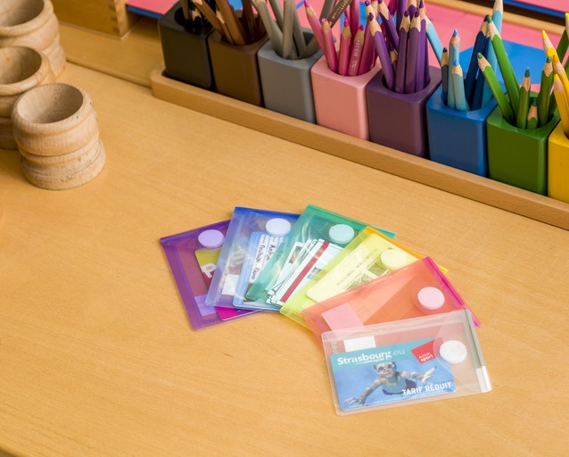 Van gerecycled materiaal. Gebruik: Praktisch in een handtas of schoudertas. Ideaal om al je kleine papiertjes in te bewaren: onkostennota's, lunchbonnen, bioscoopkaartjes, identiteitspapieren... Technische kenmerken: