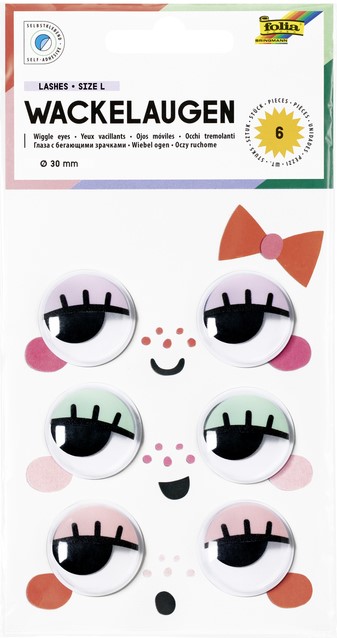 Breng je knutselwerk tot leven met deze zelfklevende wiebelogen met wimpers. De set bevat 6 stuks in Ø 30 mm, in vrolijk geassorteerde kleuren. Eenvoudig te gebruiken en perfect voor creatieve projecten met een speelse twist.